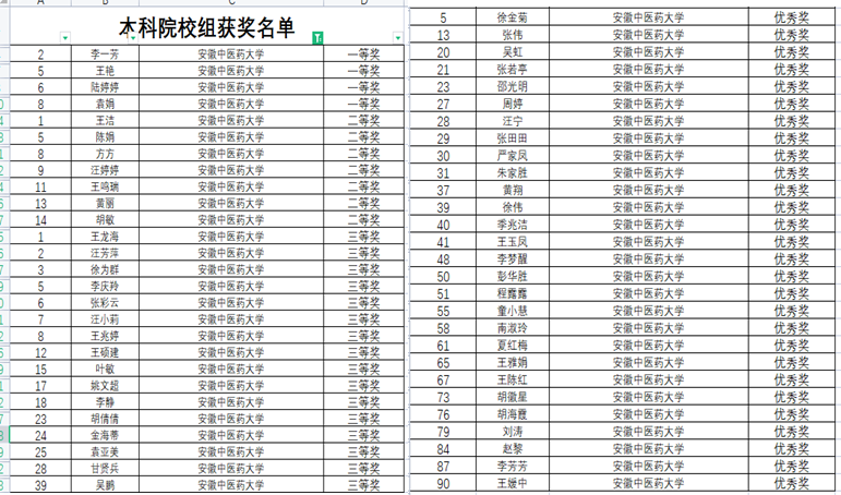 经激烈角逐,我校共有55人获奖,其中一等奖4人,二等奖7人,三等奖16人。获奖人数在安徽省医学本科院校中排名第一。我校获优秀组织奖。