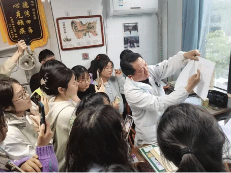 在徽文化博物馆,新安班同学们沉浸在浓厚的文化氛围中,不断感受着徽商、徽派建筑、徽州文房四宝、徽州篆刻、徽州三雕等徽州古韵的魅力,与源远流长的徽文化隔空对话,进行了一场浸润心灵的文化体验。在黄山市新安医学研究中心,同学们开启了印象深刻的新安医学求知之旅。从新安医学源远流长到新安明医青史流芳,从理法方药橘井泉香到薪火传承踵事增华,同学们不仅对新安医学有了更为深刻的认知,更强化了自身对于新安医学传承的责任感,纷纷表示要做好新安医学传承创新发展。在屯溪西园郑氏喉科门诊部和程氏内科门诊部,同学们深入探寻新安医学的传承记忆。西园郑氏喉科和程氏内科的传承人不仅向同学们详细介绍了两支医学世家的历史渊源,还向同学们传授了中医临床的相关知识,耐心解答同学们所提出的疑惑,鼓励中医学子坚守初心,守正创新,做新安医学的传承者和发扬者,令同学们受益匪浅。在黄山市中医院,同学们重点参观了康复科室和新安名医堂,医务人员向同学们展示了康复机器的操作方法以及临床常用推拿康复手法,增长了同学们的见识和对自身专业的认知。在新安名医堂,同学们认真体会名医们的治病思想,学习名医的治病方法,在临床应用中深刻领悟新安医学的价值意蕴。在屯溪寿康诊所,同学们领略了休宁方氏医学的风采,方炜煌老先生联系临床病例的讲解及举手投足之间无不体现的儒医风范给同学们留下了深刻的印象。