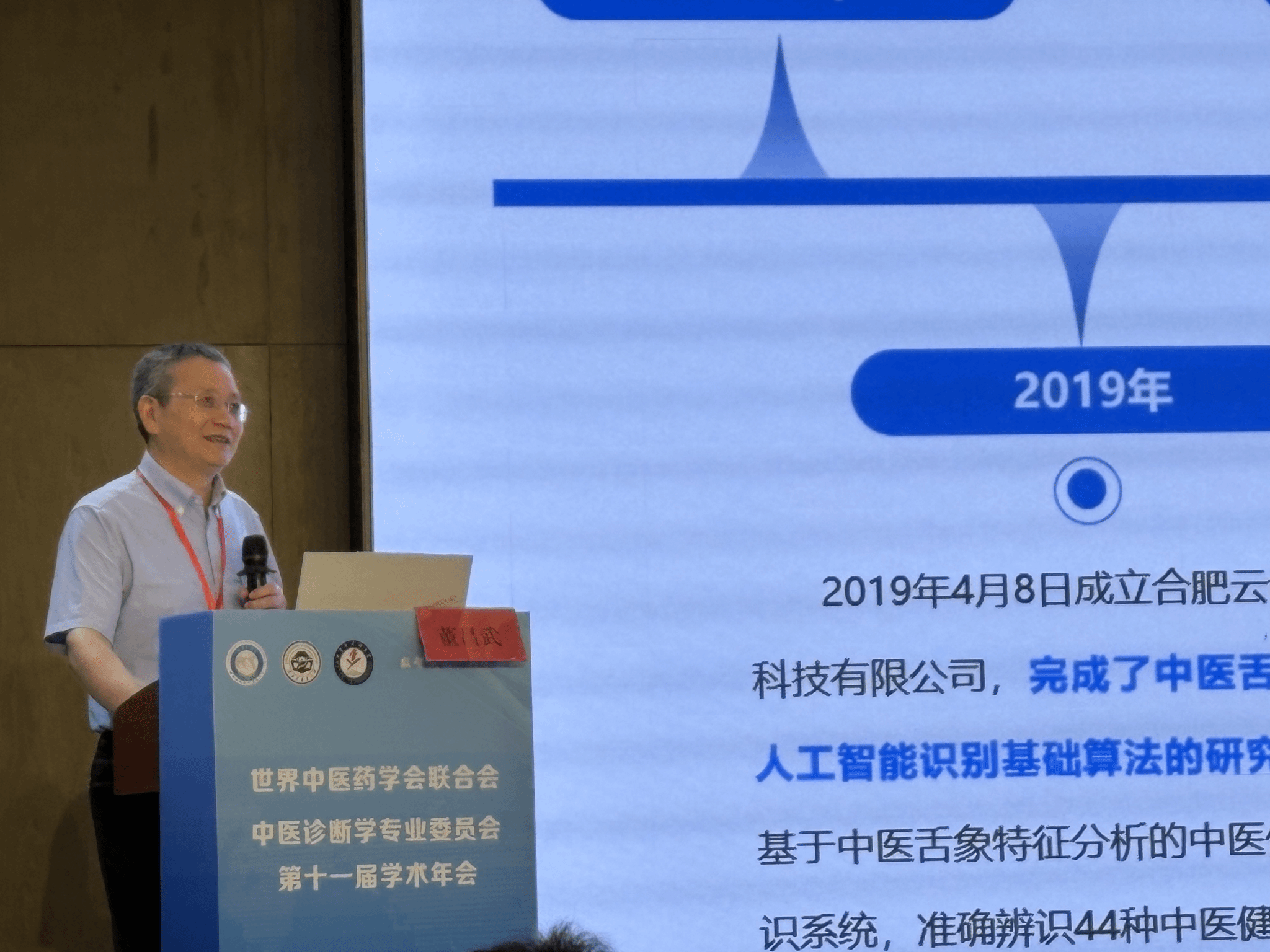 在大会上,董昌武教授作了题为《中医AI舌诊平台赋能中医诊断学科发展的实践与推广应用》的专题演讲,分享了如何实现舌象特征定性、定量、定位分析,如何基于Ai辅诊得出106种中医健康状态辨识,并获得了诸多专利知识产权矩阵,获批国家医疗器械证书,且已示范应用于数十家医疗机构,包括多家三甲医院、基层医疗机构等,展现了学校中医诊断学学科在人工智能舌诊仪研究上的重大建树与研究成果。