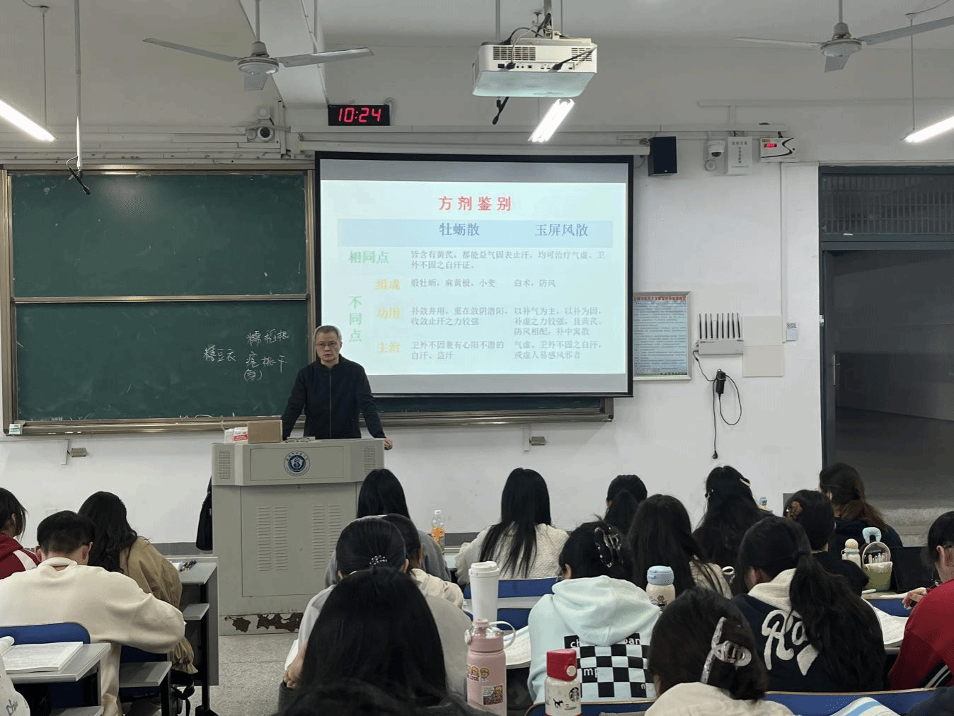 吕明安以生动形象的语言,将抽象晦涩的中医知识巧妙“活化”。他善用贴切比喻、生活实例,把艰深理论转化为通俗易懂的内容,不仅有效化解了同学们的理解障碍,也自然串联起前期所学,实现知识的有机衔接与巩固。整堂课氛围活跃,同学们学习热情高涨,在轻松氛围中增强了知识的实用性与趣味性。